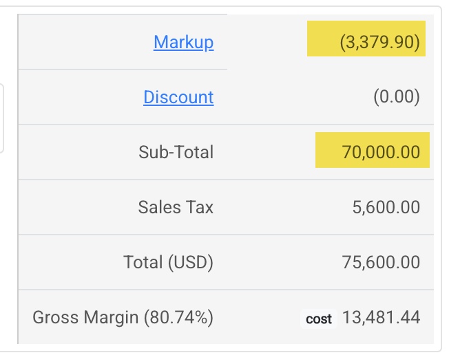 - Review the updated markup percentage