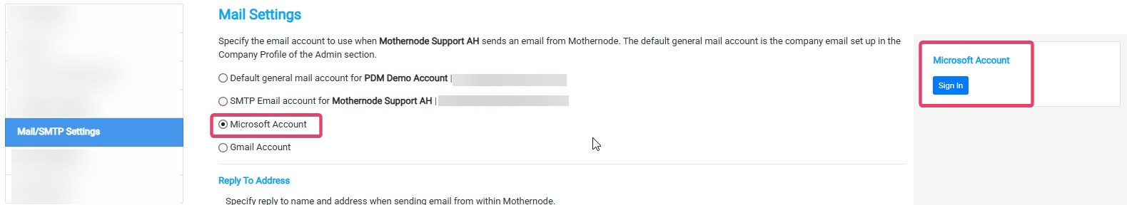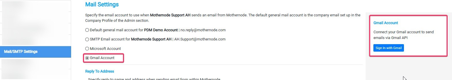 Mothernode also supports direct integration with Microsoft and Gmail accounts.