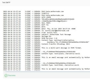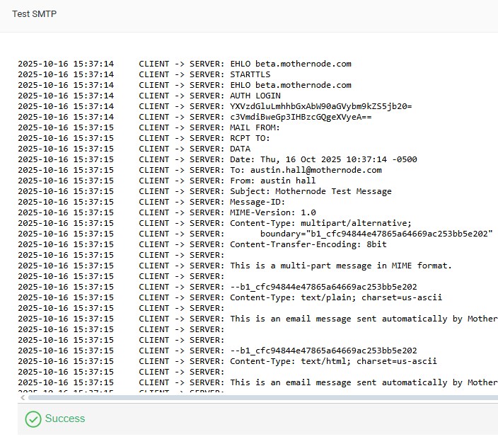 6. You’ll be redirected back to Mothernode—click Test SMTP Settings to verify your connection.